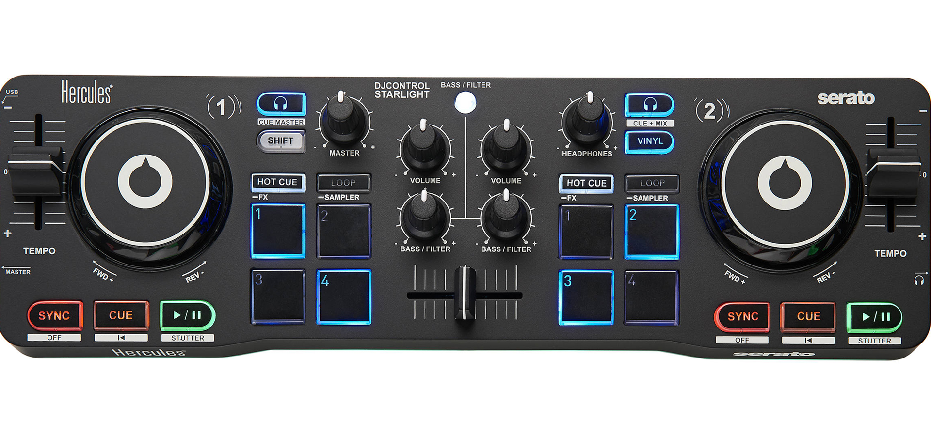 קונטרולר + כרטיס קול מובנה Hercules Starlight (בעל תמיכה רשמית מהיצרן ל Traktor Pro 2 / Virtual DJ 8 / DJay Pro)